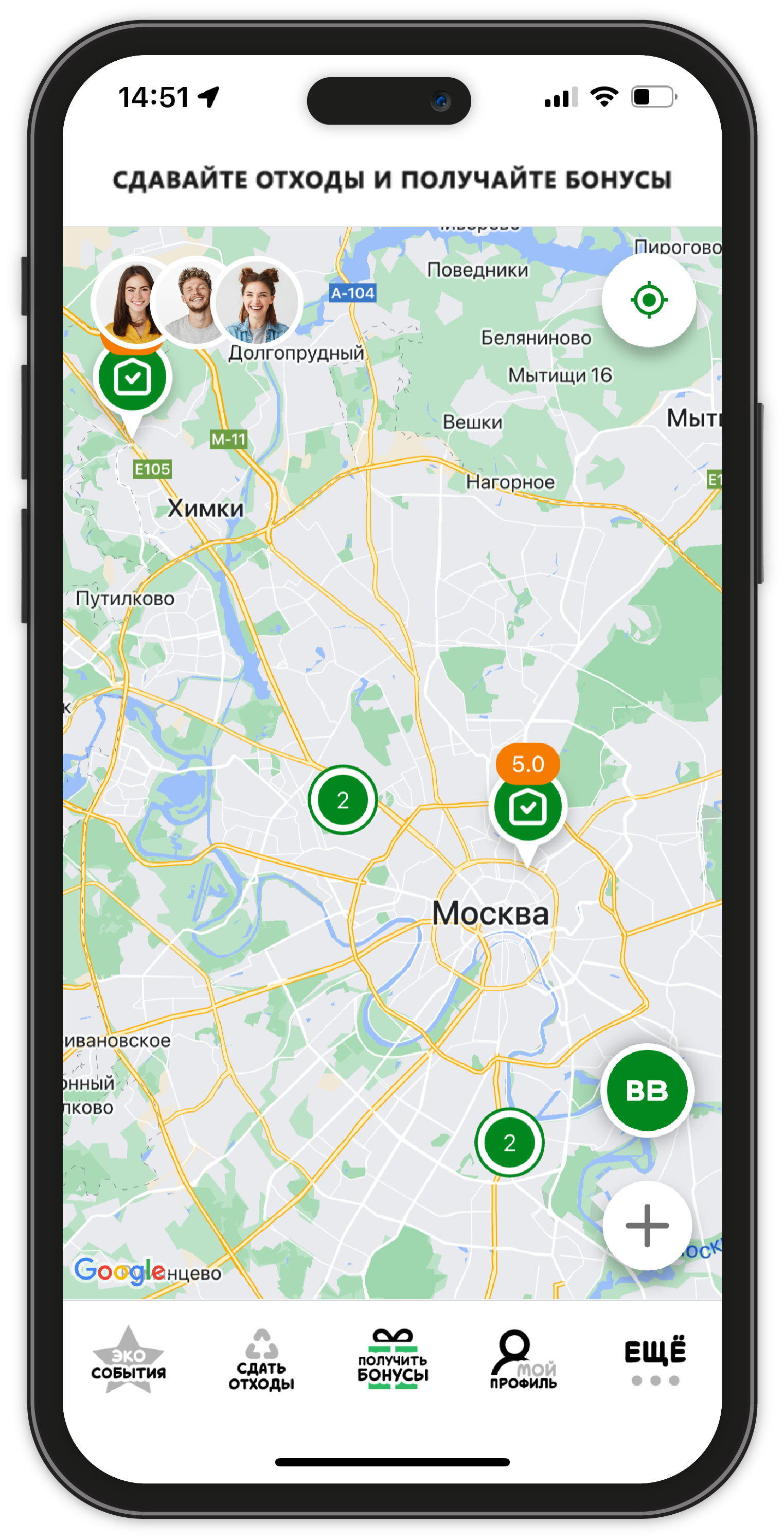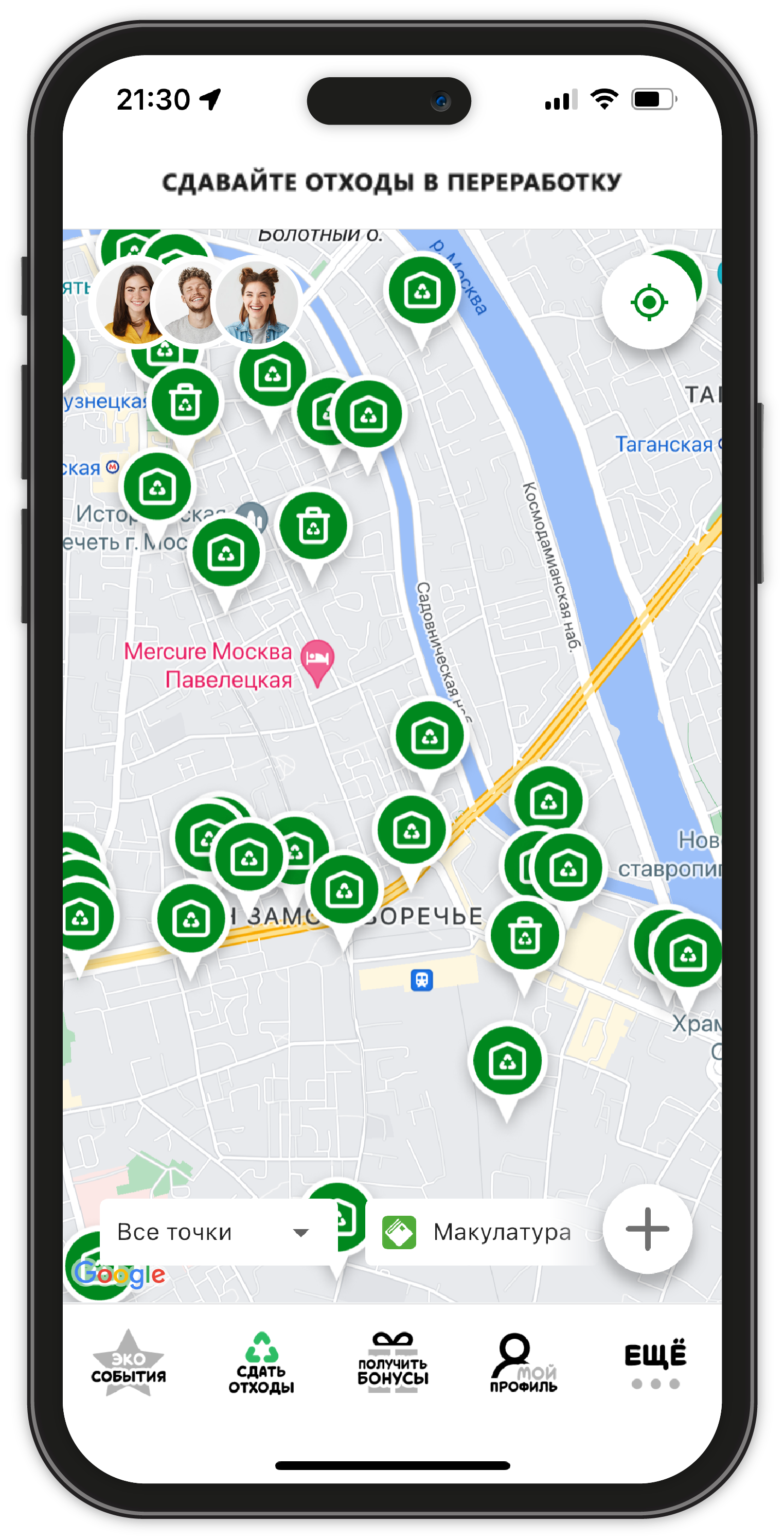 В любое время, как вам понадобится сдать ваше вторсырье, вы можете использовать Leaf для поиска ближайшего пункта приема, а приятным бонусом вдобавок будет получение бонусов.